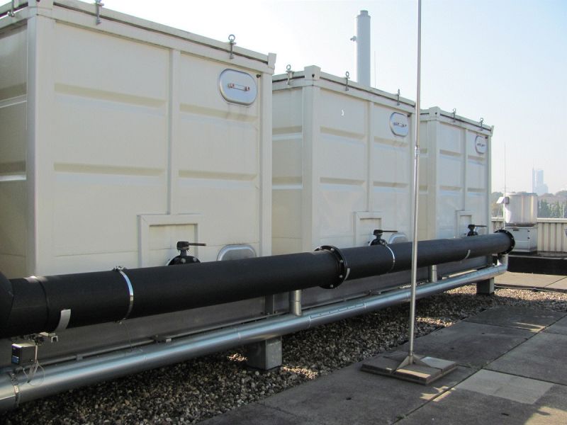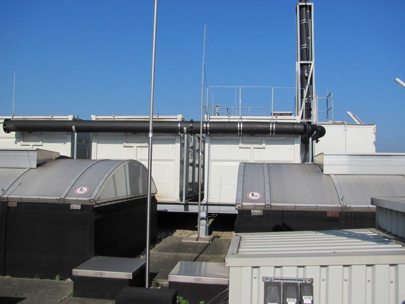 Grundsätzlich können wir auch Anlagen für den Dachaufbau anbieten, als Besonderheit kann hier auch eine getrennte Bauweise von Maschinen- und Biofilterraum zum Tragen kommen, um auch den Gegebenheiten bei einer baulich bedingten weiten Auslegung für den Kran Rechnung zu tragen.