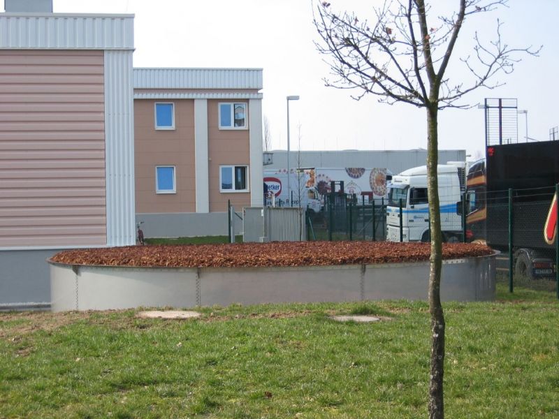 Flächenfilter können ebenerdig in allen Größen und aus verschiedenen Materialien wie Kunststoff, Beton oder Edelstahl gebaut werden. Aus optischen Gründen kann auch eine teilweise oder ganze Absenkung im Gelände erfolgen. Der Ein- und Ausbau des Biofiltermaterials erfolgt durch speziell ausgelegte LKW-Greifbagger.